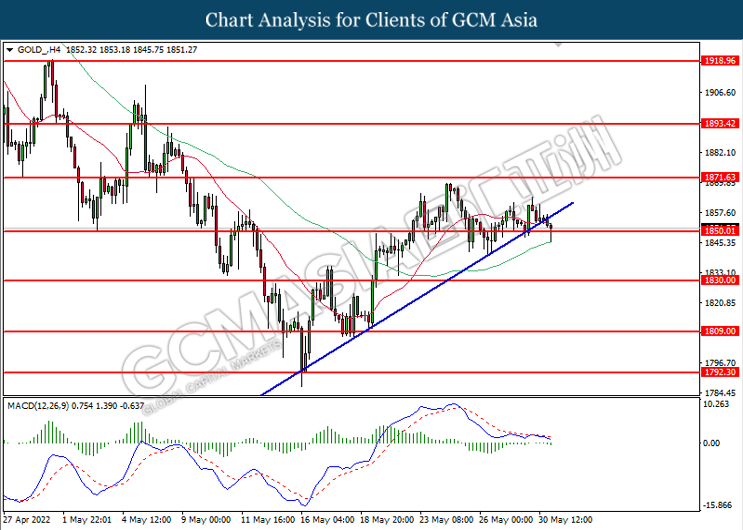 Tahap sokongan: 1850.00, 1830.00