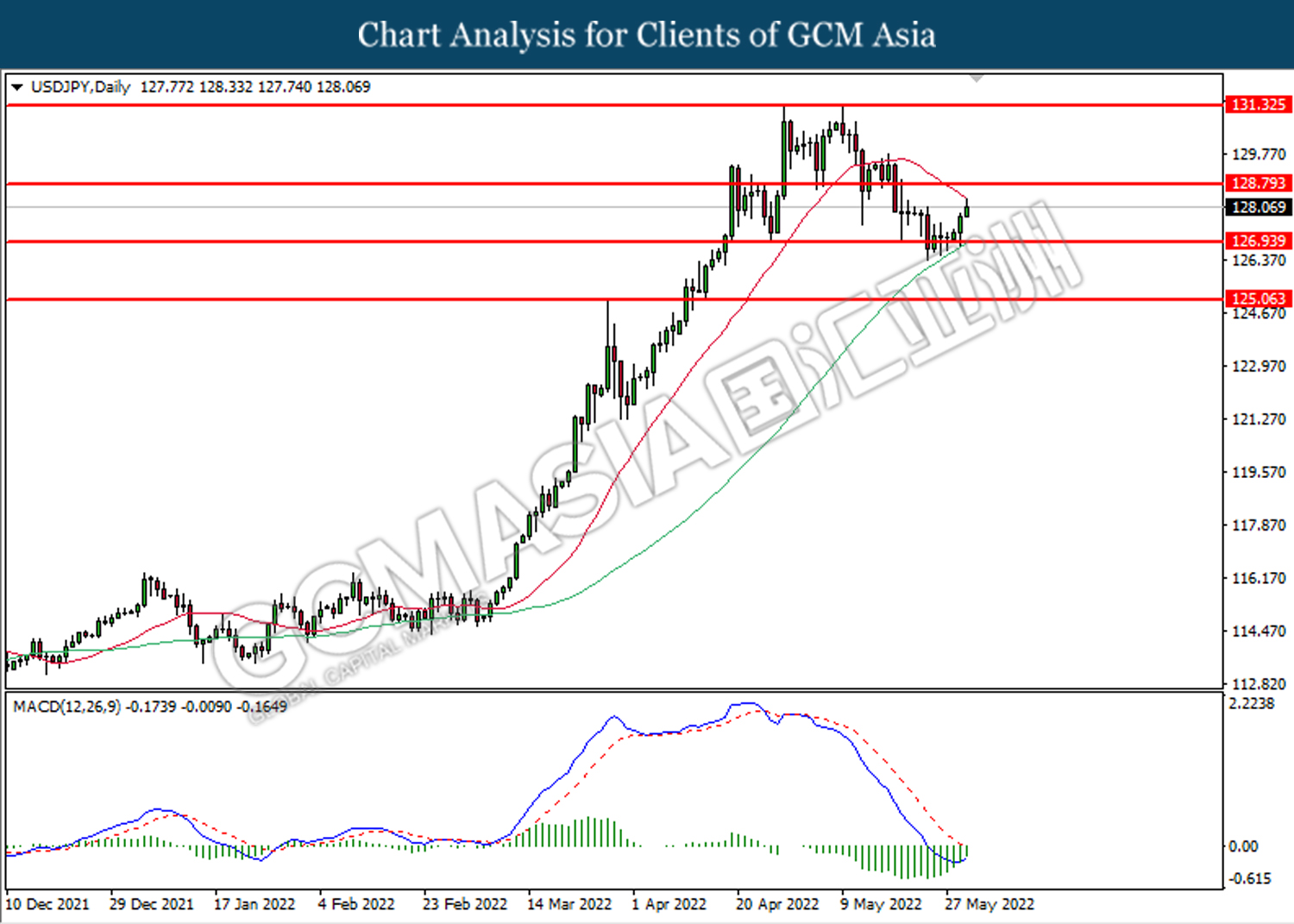 Tahap sokongan: 126.95, 125.05