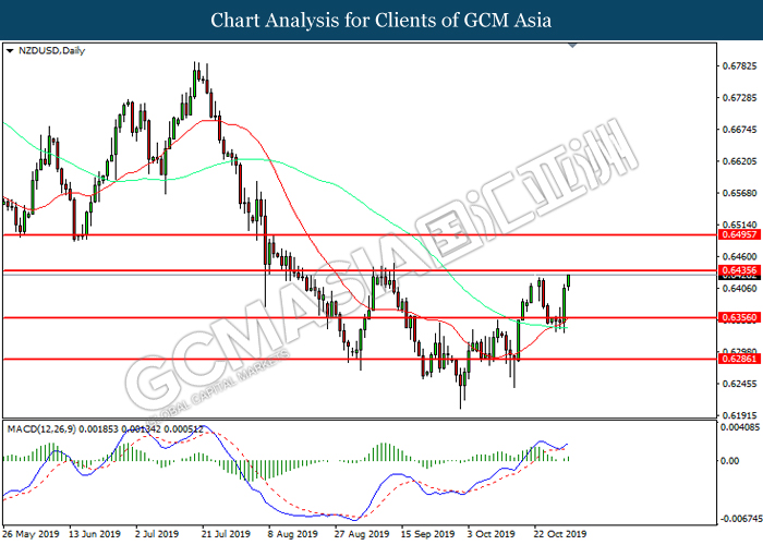 NZDUSD, Daily: NZDUSD telah didagang dengan lebih tinggi sementara kini menguji di tahap rintangan 0.6435. MACD yang memaparkan momentum bullish mencadangkan pasangan ini untuk didagang dengan lebih tinggi selepas ia memecah tahap rintangan tersebut.