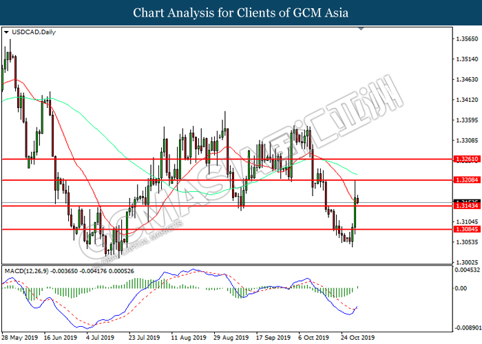 USDCAD, Daily: USDCAD telah didagang dengan lebih rendah sementara kini menguji di tahap sokongan 1.3145. Namun, MACD yang memaparkan momentum bearish yang berkurangan mencadangkan pasangan ini untuk mengalami pembetulan teknikal bagi jangka pendek.