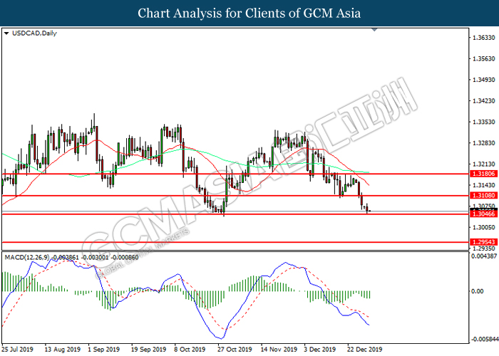 USDCAD, Daily: USDCAD telah didagang dengan lebih rendah sementara kini menguji di tahap sokongan 1.3045. MACD yang memaparkan momentum bearish mencadangkan pasangan ini untuk melanjutkan kerugiannya selepas ia memecah tahap sokongan tersebut.